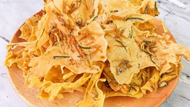 • Campur tepung beras bersama tepung terigu, santan, telur, bumbu kari, bawang putih dan daun bawang. Aduk rata.