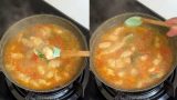 Siram dengan air, kemudian campurkan hingga merata, terakhir tes rasa. Apabila telah sesuai, angkat dari kompor.