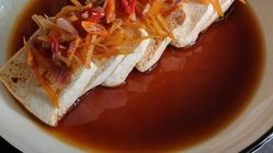 - Letakkan tahu kukus yang telah disiapkan ke dalam piring hidangan, lalu tuangkan saus tiramnya yang masih panas. Hidangkan selagi hangat agar lebih nikmat.