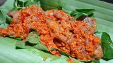 • Potongan daging direndam dalam bumbu beberapa saat, lalu tusuk dengan tusuk sate masing-masing 4 potong daging.