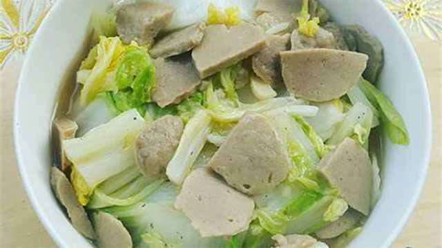 Didihkan kaldu, tambahkan bawang putih dan bawang merah yang telah ditumis, garam, merica, bakso, tahu goreng, irisan sawi putih, daun bawang dan daun seledri.